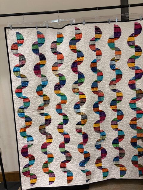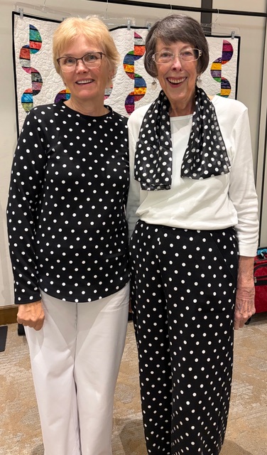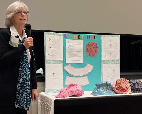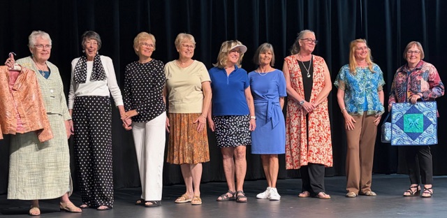 The 2026 Demo Day was a huge success. Christy Myers & Teena Sweet were co-chairs with a theme of Mission Impossible. There were presentations by Pam Clarke, Phil Weber, Laurel Clarke, and Rachel Joines. Multiple door prizes were gifted, most notable from: Cathey’s, Granny’s Spinning Wheel, By & By, the Cactus Quilt Shop, and the Sewing Basket. The Silent Auction offered a shopping opportunity. The proceeds enabled the guild to keep the price of the luncheon low. A quilt donated by Joy Lusenhop and quilted by Pam Clarke was won by Rachel Joines. The fashion show was narrated by Dianne Huston and Joy Lautenschlaeger and featured several garments made with Linda Ryan fabric.